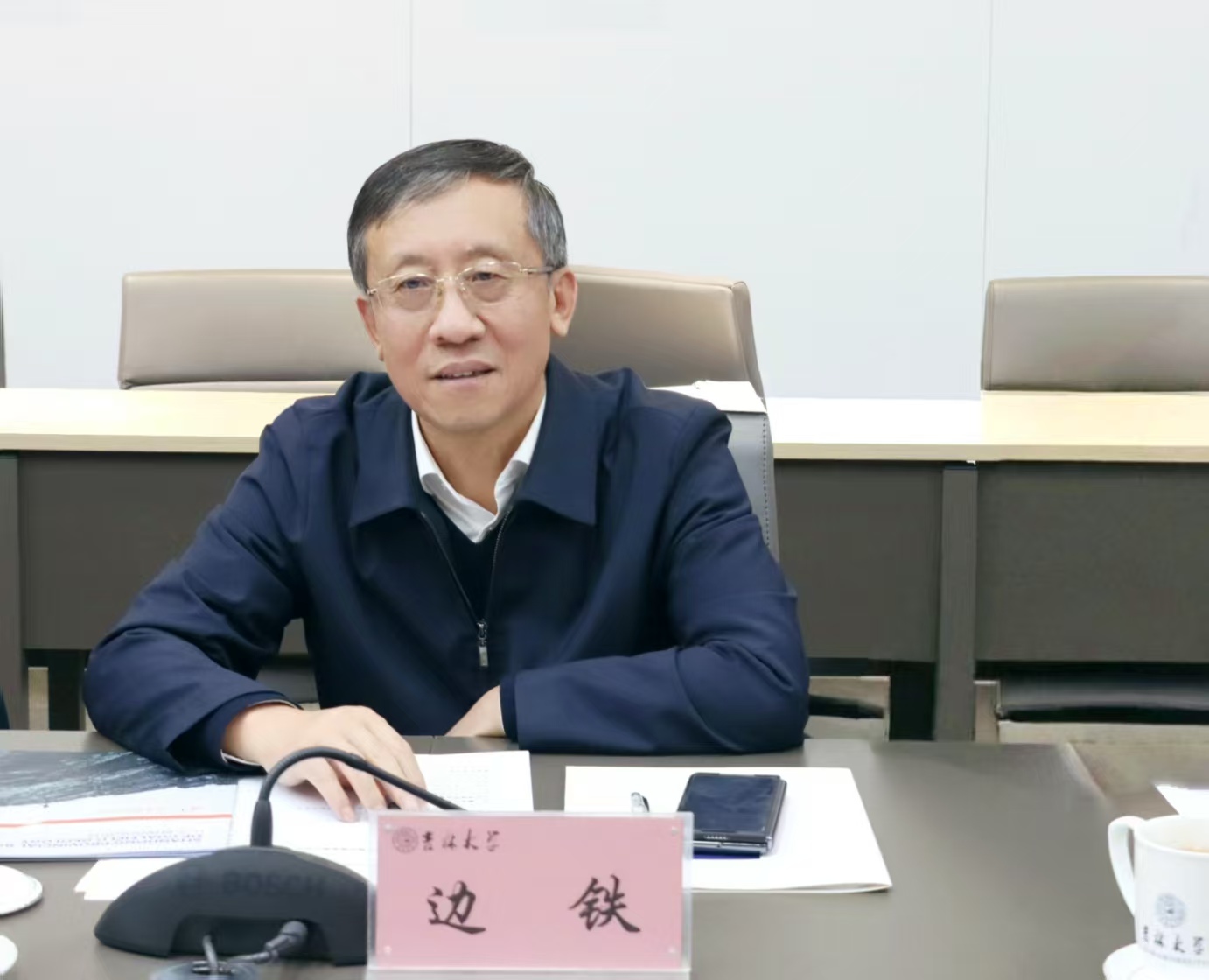 【文字/图片 兰去非】11月13日,山东省煤田地质局副局长李小彦带队来我校调研。双方围绕地学人才培养、科研攻关与学科建设等方面进行对接交流并开展座谈。校党委常委、副校长边铁出席座谈会,座谈会由科研院副院长、地质调查项目管理办公室主任白文翔主持。